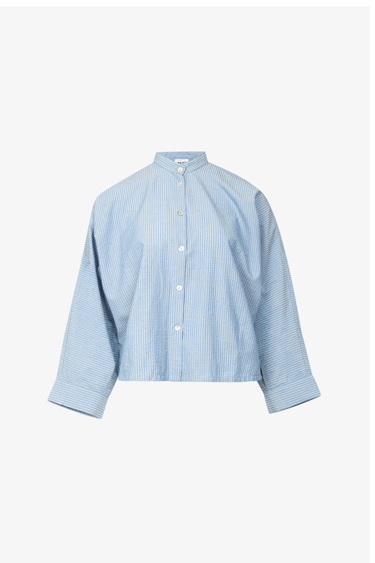 Chemise Nehru Coton Seersucker Bleu Ciel