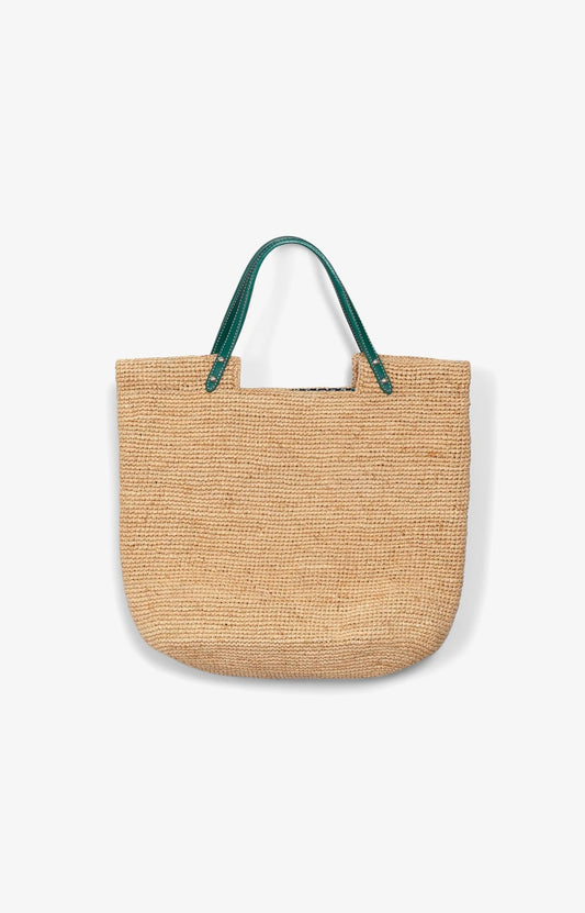 Sac cabas Hélio Naturel / anses cuir vertes