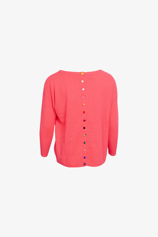 Pull Col RDC Oversize Boutons Multicolore Dos Cachemire Rose Bonbon