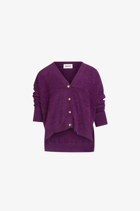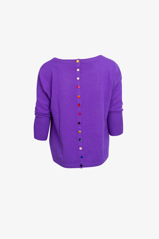 Pull Col RDC Oversize Boutons Multicolore Dos Cachemire Violet Électrique