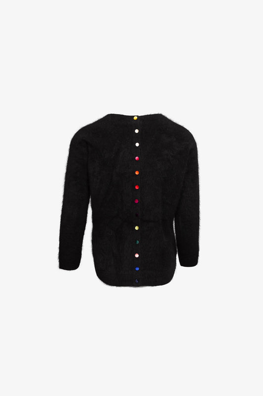 Pull Col RDC Oversize Boutons Multicolore Dos Raccoon Noir