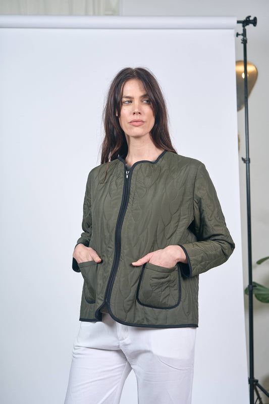 Veste Découpe Zip Velours Grosse Cote Kaki