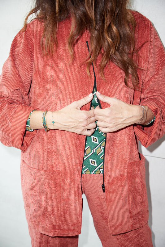 Veste Découpe Zip Velours Grosse Cote Bordeaux