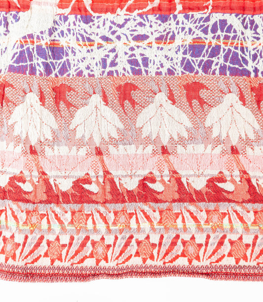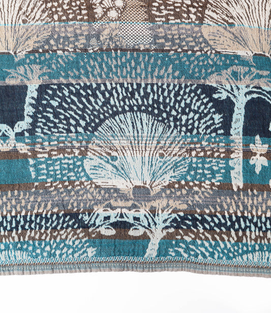 Ces étoles uniques sont en tissage jacquard, qui à la différence d’un tissu imprimé, a la particularité de créer un motif par l’entrecroisement des fils de coton. Cette technique française confère au tissu un certain relief rendant cette matière plus vivante, aérée et très agréable à porter. Cette dernière permet aussi le côté réversible et doublement esthétique du motif présent à la fois sur l’endroit et l’envers de votre écharpe.