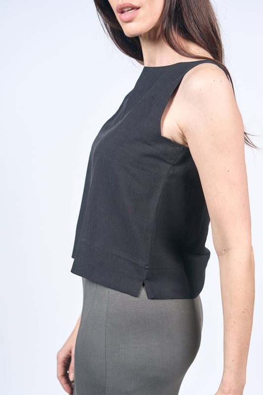 Top Bateau Lin Viscose Noir
