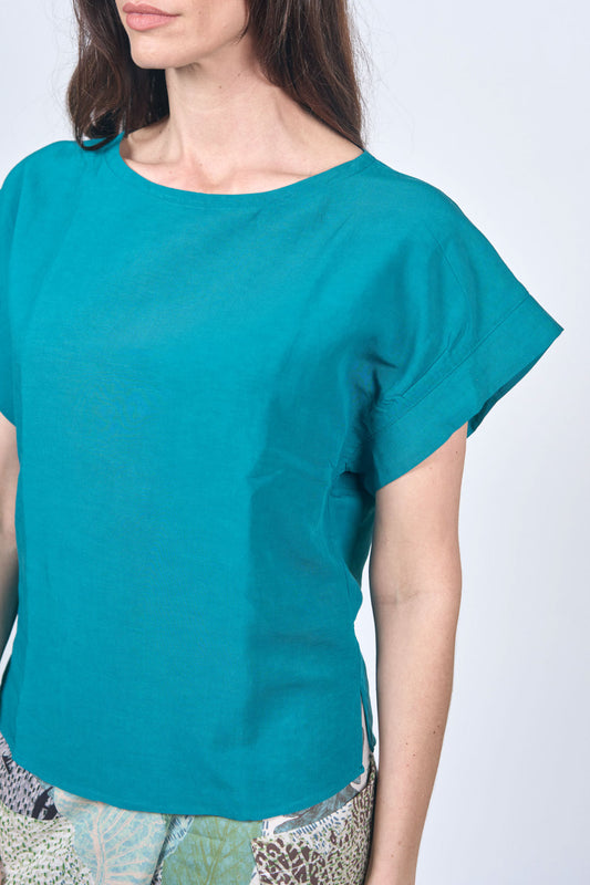 Linen Viscose Duck Cuffed Sleeve Top