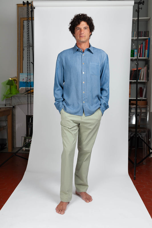 Blue Tencel Straight Shirt