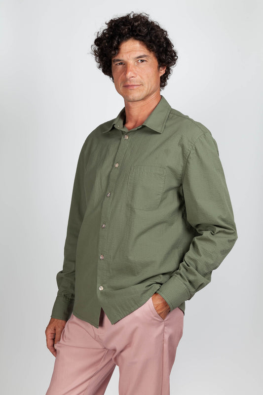 Khaki Seersucker Straight Shirt