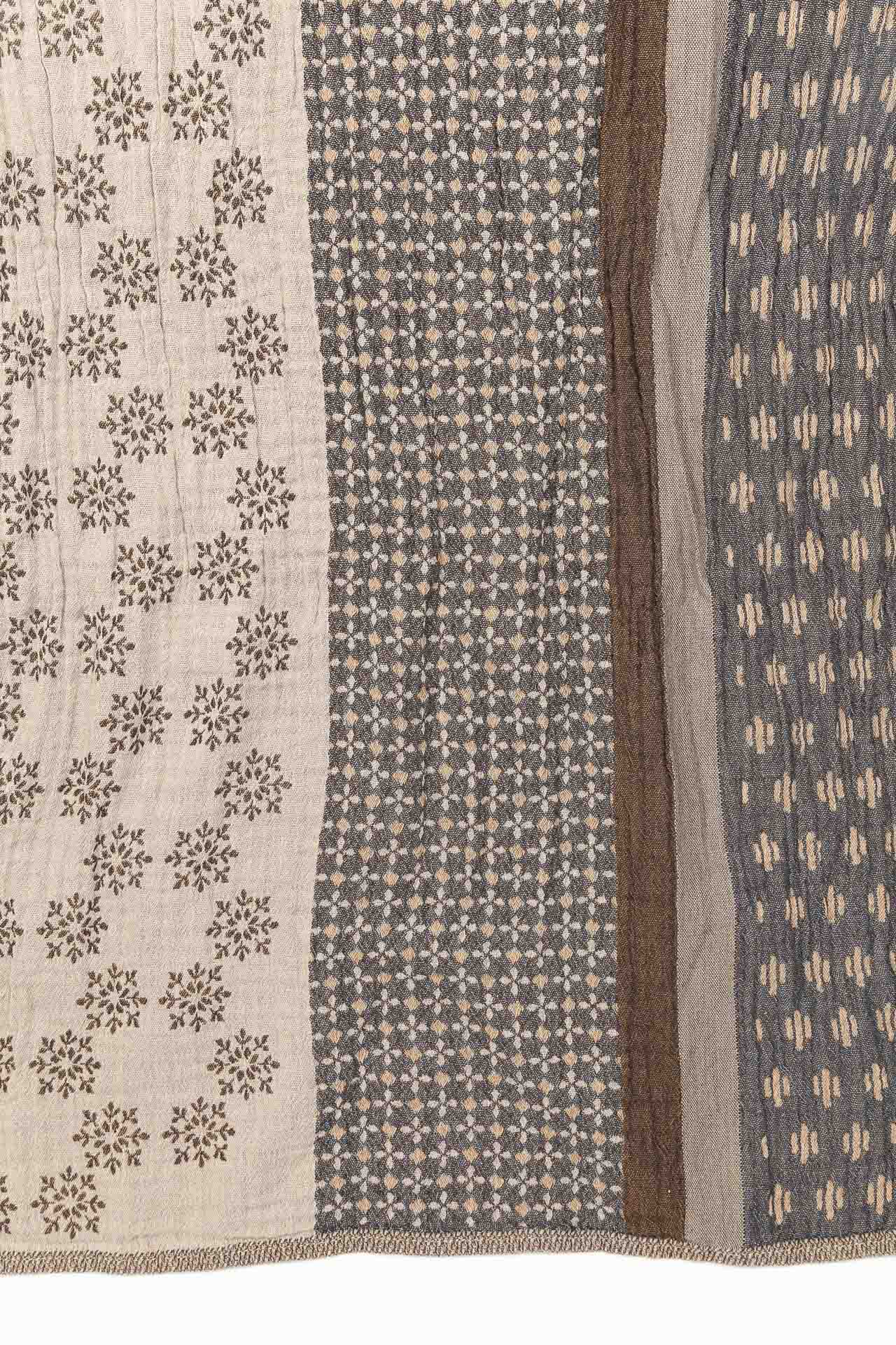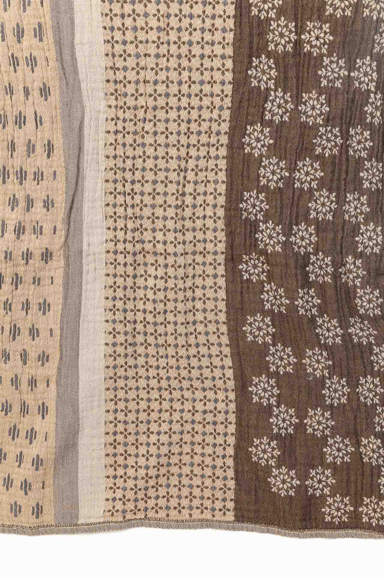 Le tissage jacquard a la particularité de créer un motif par l’entrecroisement des fils de coton. Cette technique confère au tissu un relief qui rend le support "vivant", aéré et très agréable à porter. Cette technique permet aussi le côté réversible et doublement esthétique du motif car le dessin à la fois présent sur l’endroit et l’envers de l’écharpe.