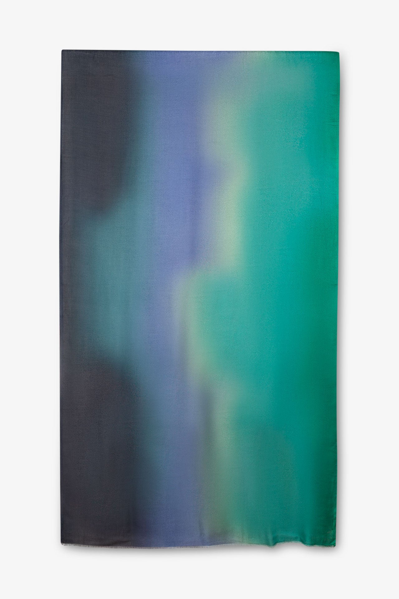 L'écharpe Spectre Boréal en modal et soie est un accessoire très stylé et intemporel. Fabriquée en Inde, elle offre une douceur et un confort incomparable. Son motif coloré et graphique va se marier à merveille avec votre look. Le motif présente une composition géométrique composée de carreaux et de motifs circulaires en éventail, organisés de manière asymétrique. Les couleurs sont douces, dans une palette de tons terre et pastel (verts, bleus, bruns, rouges orangés, et beige). L'effet est à la fois dynamique et structuré, donnant une impression d'équilibre entre rigidité et mouvement.