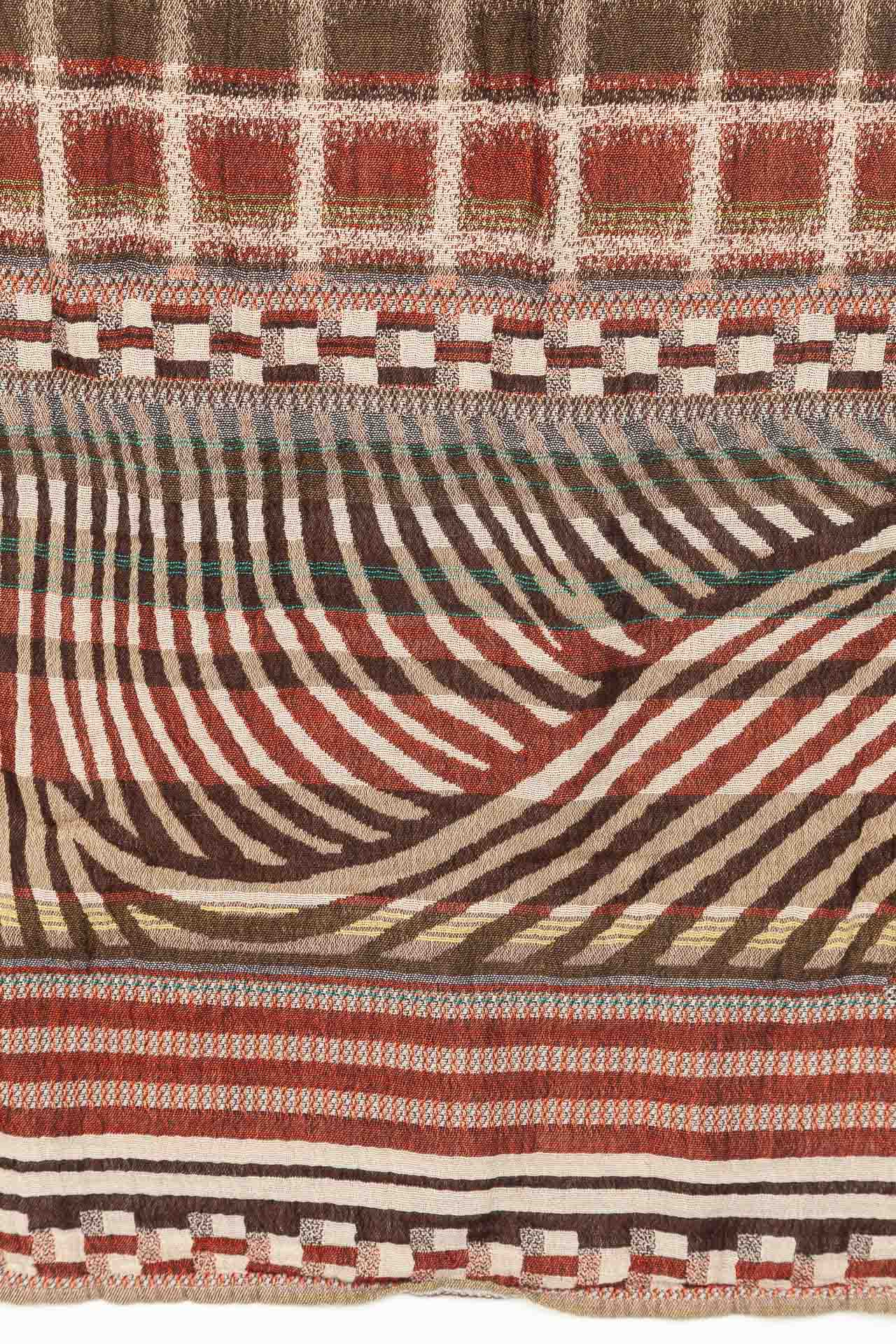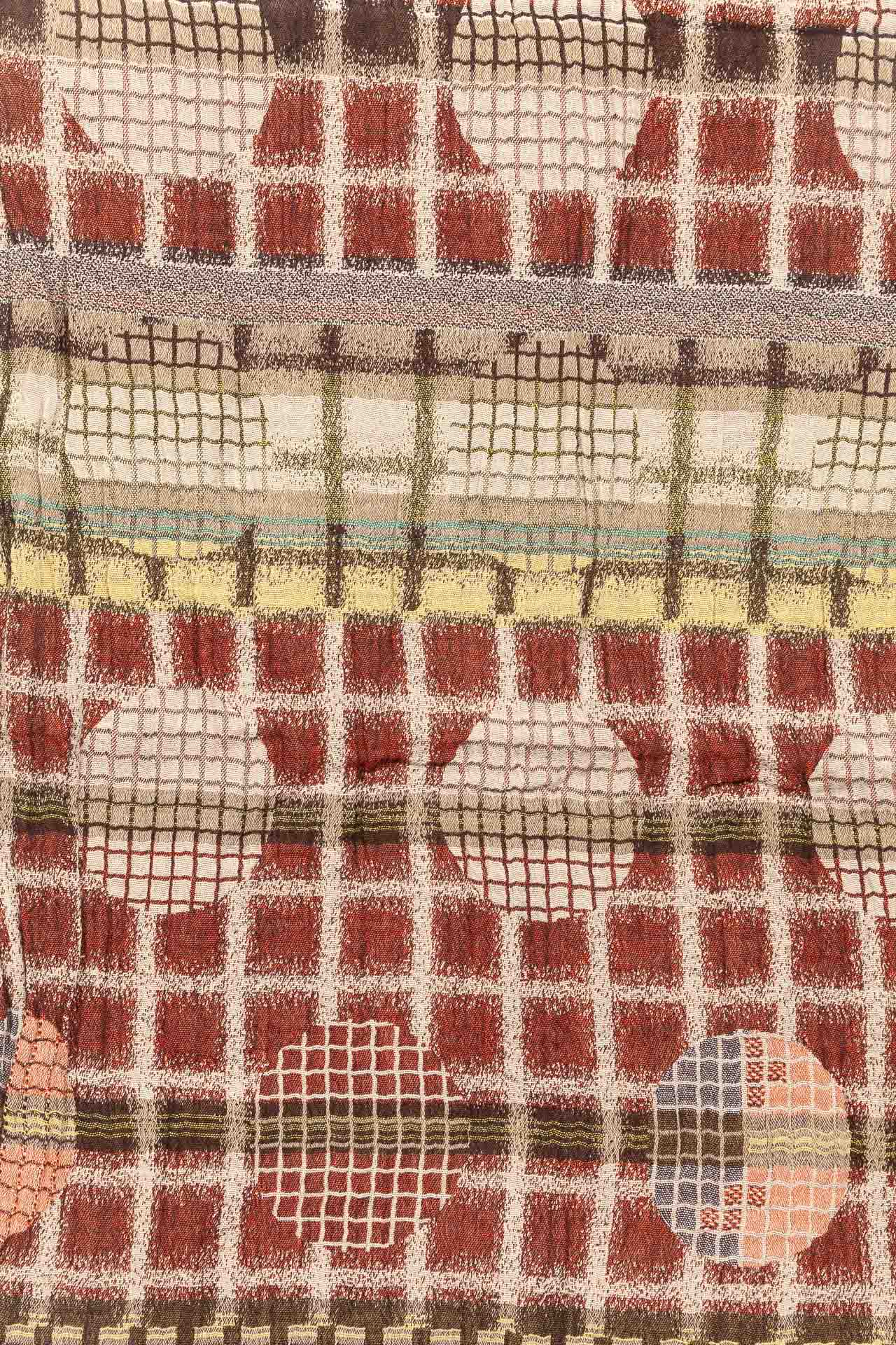Le tissage jacquard a la particularité de créer un motif par l’entrecroisement des fils de coton. Cette technique confère au tissu un relief qui rend le support "vivant", aéré et très agréable à porter. Cette technique permet aussi le côté réversible et doublement esthétique du motif car le dessin à la fois présent sur l’endroit et l’envers de l’écharpe.