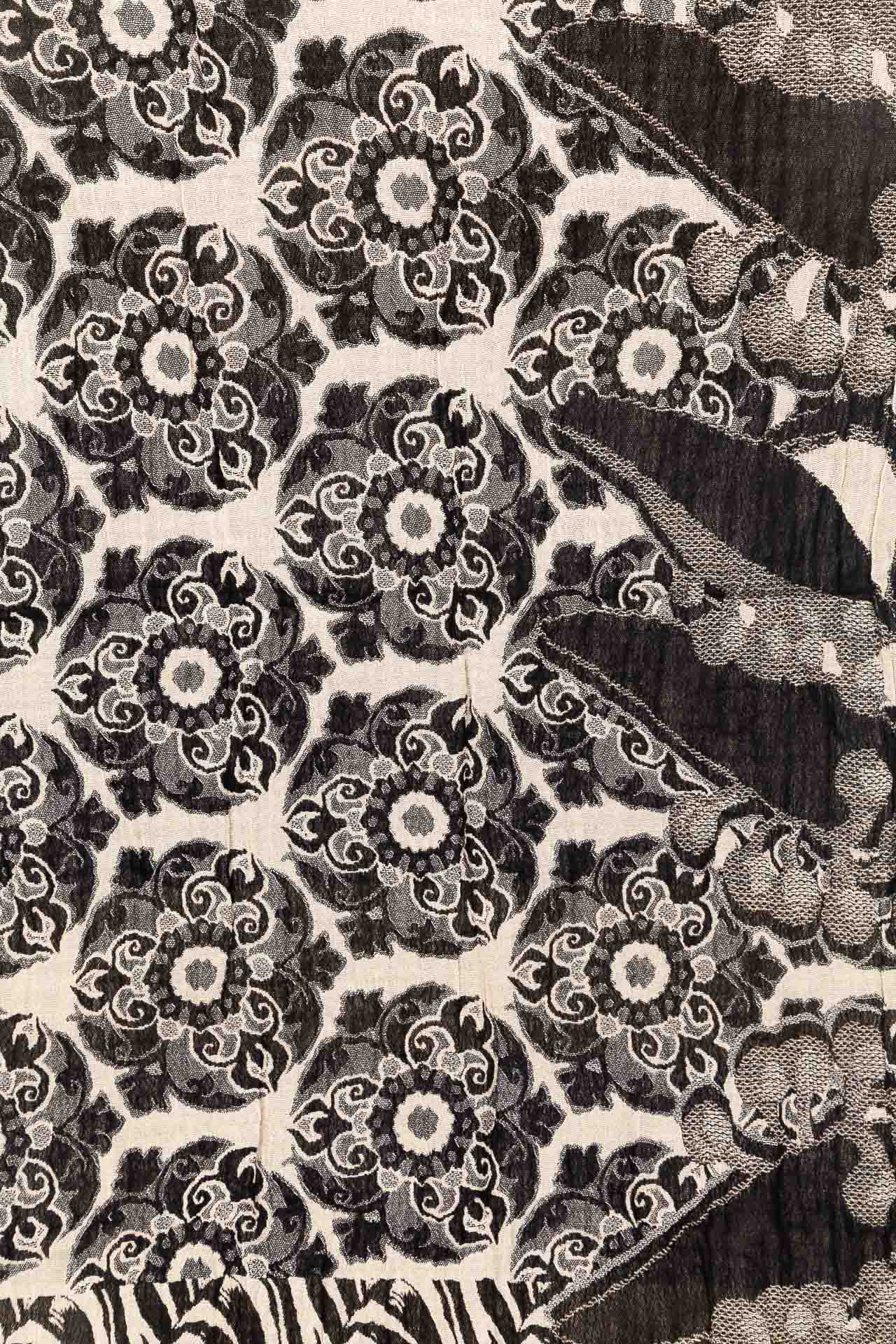 Le tissage jacquard a la particularité de créer un motif par l’entrecroisement des fils de coton. Cette technique confère au tissu un relief qui rend le support "vivant", aéré et très agréable à porter. Cette technique permet aussi le côté réversible et doublement esthétique du motif car le dessin à la fois présent sur l’endroit et l’envers de l’écharpe.